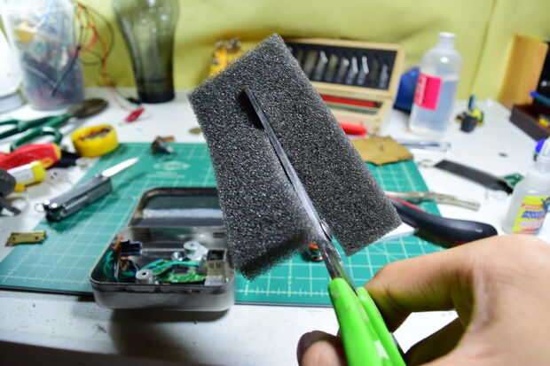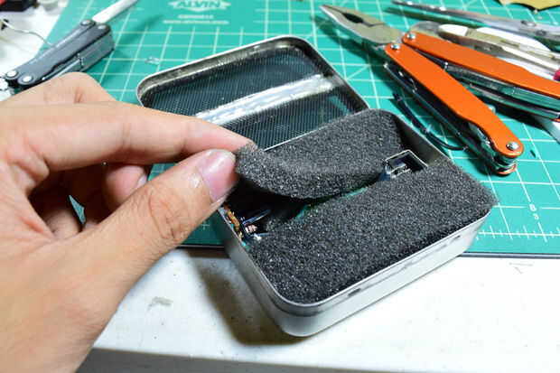 Cortar la espuma a la mitad y cubrir ambos micrófonos con él. Esto funciona como un filtro de pop y evita que el contenedor de Altoids de ecos.