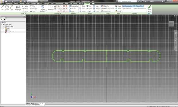 Paso 14: filete de ambas esquinas de un extremo con. 25" entonces crear una línea de construcción sobre el eje y y el objeto del espejo