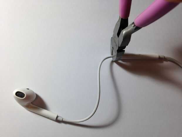A continuación tome el auricular cortado el audífono apagado justo encima del micrófono. Haga esto con cuidado para no dañar el micro.