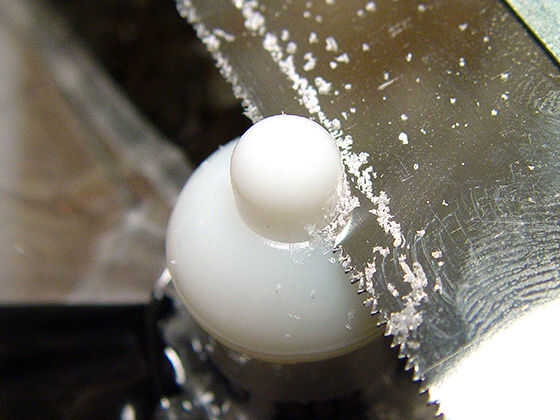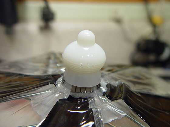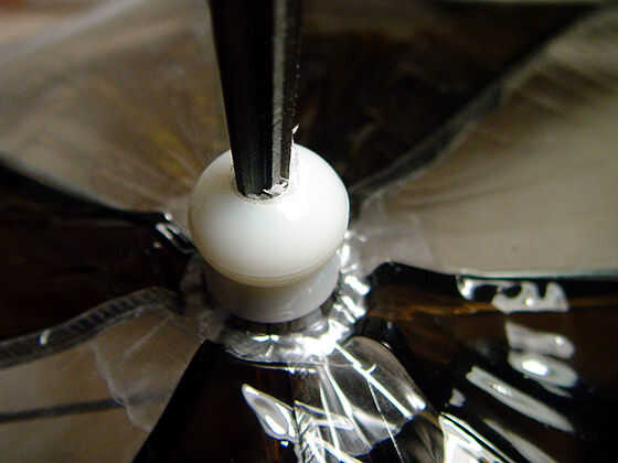 a continuación, echa un vistazo a la parte superior del sombrero paraguas. ¿Ver ese pequeño botón? Corte con su sierra de maquinilla de afeitar y limpiar el agujero con un cuchillo exprimidor o agudo según sea necesario.