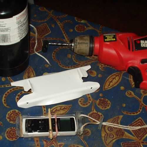 Cuando el plástico se formó, perforé cuatro agujeros para pasar el hilo de nylon que sirve como una correa de la barbilla.