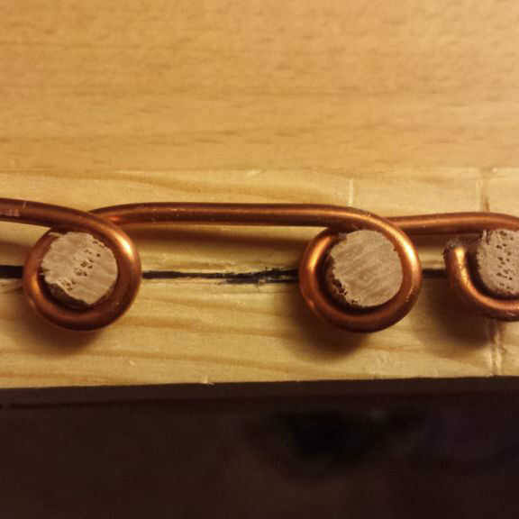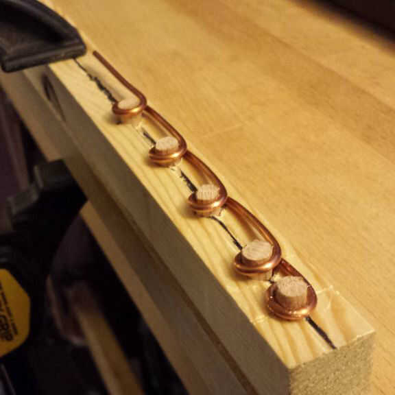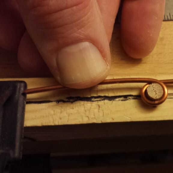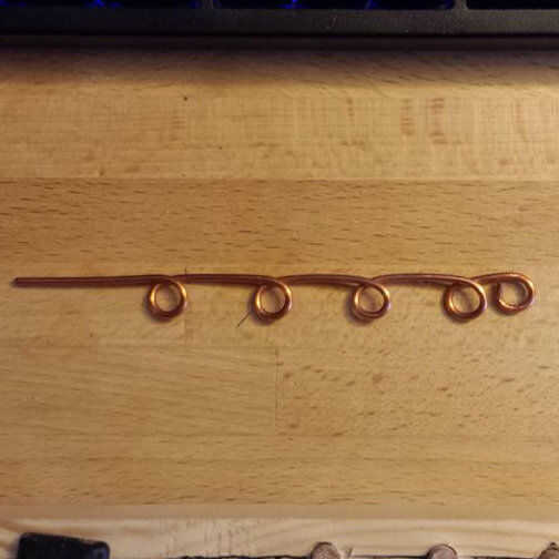 -ejercer presión sobre el cable más cercano a la espiga te dará una curva más apretada - repetir hasta tener 4 lazos de alambre guía junto con el bucle de 1 eje