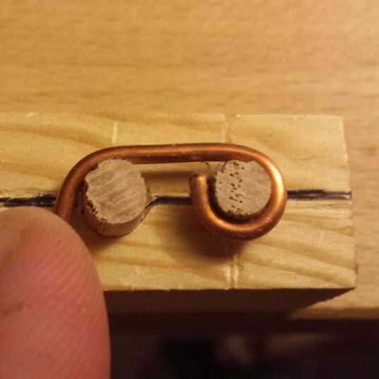 Ahora doblamos los lazos que sostenga el cable del micrófono en su lugar (lazos de la guía de alambre). Si no estás usando la plantilla, tratar de hacer una pieza que se parece a la foto del resultado final (he construido los primeros prototipos de algunos de esta manera).