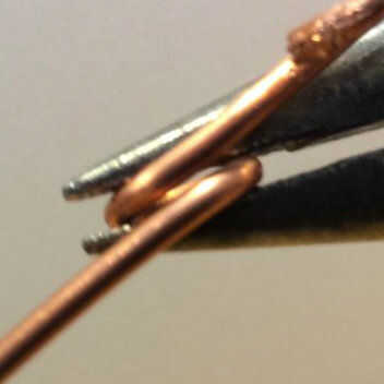 - usando el segundo par de pinzas (o dedos) doble un lado en 90 grados de ángulo para el cuerpo del bucle (ver imagen)