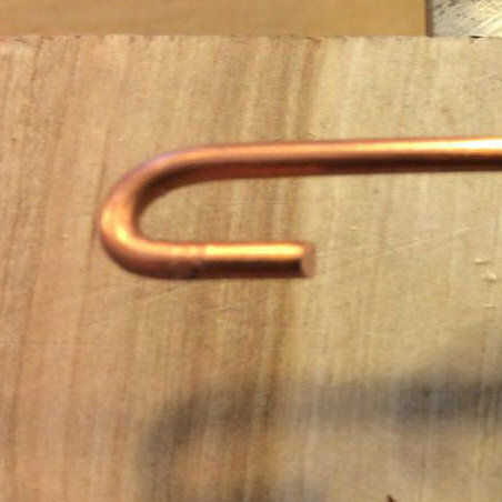 - Gire una apretada "U" en el cable. Debe haber sobre 1/8" amplia brecha, aproximadamente 1/4" de largo. Asegúrese de que la curva de la U no es demasiado fuerte, queremos que la pestaña de plástico mic se deslice completamente pulg. caso en todo, la curva debe ser un poco * más grande * que el ancho de la lengüeta de plástico.