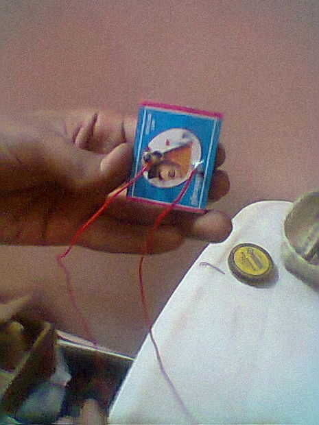 Llevar los auriculares y tocar la caja de cerillas, luego se escuchará el sonido en los auriculares.