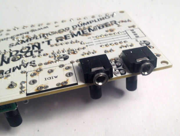 Conectores de audio por otra parte, va a la placa de interfaz. Como jack MIDI, se coloca al otro lado del tablero del interfaz (en realidad, son junto al jack midi).