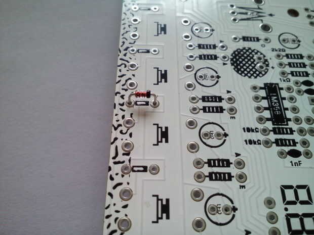 Nota: Diodos son componentes polarizados, por lo que realmente importa, que manera pones en placa. Hay sugerencias de cómo colocar el diodo en cada lugar, por lo que es realmente fácil, pero es buena costumbre Compruebe, antes de soldar la parte a la Junta. Usted ahorrará mucho tiempo y problemas.