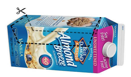 Tome usted una leche de cartón, tetra pak o similares, un medio galón es bonito pero un envase de cuarto de galón tamaño funciona bien. Enjuagar para eliminar cualquier rastro del contenido.