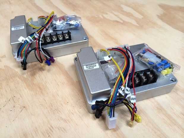 Este proyecto utiliza dos 2kW o 3hp eléctrico brushless del Motor del ciclón. Estas son de tamaño ideal y bien de precio para satisfacer el proyecto. Ciclón utilizan controladores de Kelly para sus motores y aunque he encontrado Kelly Controladores para estar bien en los proyectos anteriores, Golden Motor crucero reguladores tienen una buena gama de características a un precio mejor, así que estamos utilizando dos 48V 50A continuos controladores (pico 100A) de oro del motor en este proyecto.