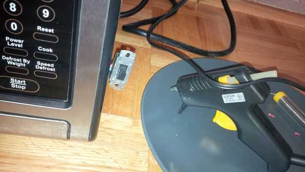 En este punto, el interruptor ahora es conectado en serie con el buzzer y se encuentra en el exterior del microondas, con el tablero de control en el interior. Probar que funciona y que has hecho todo correctamente enchufando en el microondas... pero...