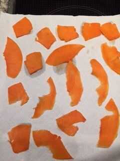 Coloque las rodajas cortadas en un papel de cocina absorbente para aspirar hacia fuera la humedad, durante un minuto o 2.