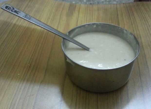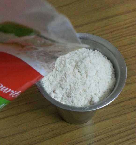 2. Combinar 1 medida de harina, agua 1 medida y 1/2 medida amargo cuajada (uso regular yogurt natural si no tienes cuajada agria)