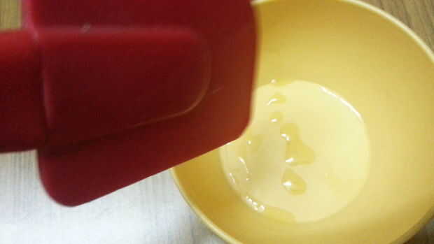 3. Untar el aceite alrededor de los lados y el fondo de la olla (yo usé una espátula de goma para hacer esto)