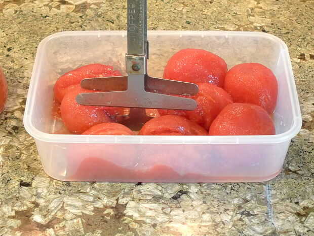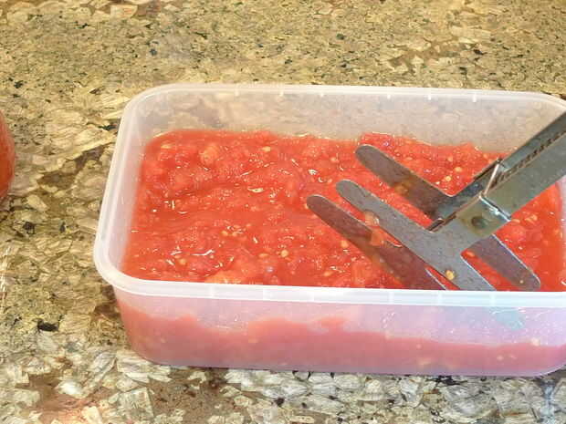 Tengo un extraño dispositivo que me permite cortar en un recipiente de Tupperware de fondo plano superficial pero puede utilizar una tabla de cortar, es sólo un poco más complicado. Recuerde, usted no quiere el jugo, sólo la pulpa.