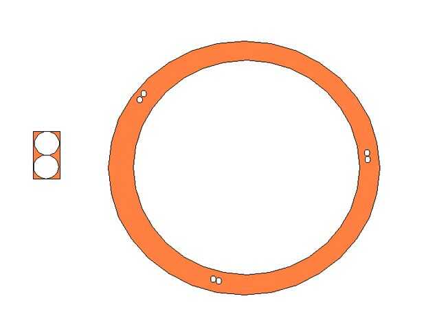 Marca el tamaño de los agujeros rectangulares para los rodillos de plástico caber dentro de los agujeros cuando los rodillos se sitúa en los bordes como lo hicieron en la antigua guía de giradiscos. Estos agujeros están en las líneas radiales de 120 grados. Perfore dos agujeros para eliminar la mayor parte del material necesario para hacer las aberturas rectangulares. Ver el rectángulo con los dos agujeros a la izquierda del gráfico.