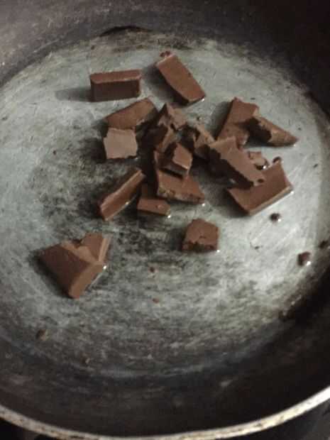 para 4 personas100 g (= 1/4 lb) de chocolate negro4 cuadrados de chocolate blanco3 huevos80 g (= 1/3 taza) de azúcar50 g (= 1/8 lb) de mantequilla sin sal20 g (= 1/4 taza) de harinaUn poco de lechePaso 1: Romper 3 huevos en un bol, añadir el azúcar y