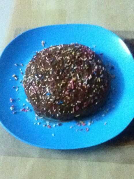 Microondas vainilla tarta de bizcocho con Chocolate Ganache helar