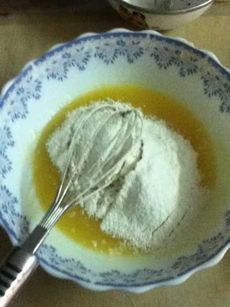 Mezcle la mantequilla derretida con el azúcar. Ahora añadir los huevos uno por uno. Tamizar la harina y el poder para hornear y agregar la esencia de vainilla y leche. Hay que ir! Tienes tu masa de tarta.
