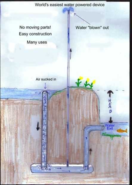 El problema fundamental con energía eléctrica es que cuando se escala hacia abajo de tamaño de la producción, en una instalación de energía hidroeléctrica o eólica, se llega a un punto donde la energía eléctrica producida por año no paga por el costo o el "alquiler" de la maquinaria. Es una regla de la economía que la producción debe cubrir los intereses del préstamo para la compra de la maquinaria. Esto significa que pequeños ríos cerca de donde yo vivía eso molinos de agua alimentado por más de 1 mil años repentinamente se convirtió en "antieconómicas" hace sólo 60 años! Así que tenemos un problema muy raro, hemos descalificado enormes cantidades de energía de la economía de energía porque una moderna forma de usarlo es "antieconómica". Pero los griegos y romanos utilizaban este poder hace 2000 años. ¿No es una pena desaprovecharlo? Me gusta desafiarme a mí mismo así que me fui al otro extremo totalmente! ¿Por qué no utilizar energía tan pequeño que nunca se ha utilizado antes? En 1983, quería regar mi jardín en Irlanda, fue de un poco corriente pero no hubo casi ninguna "cabeza" y muy poco flujo en la corriente. ¿Pequeño? cabeza de 8 pulgadas (20 cm) y cerca de 250 litros por minuto de flujo y yo sólo estaba usando parte de ese flujo! Yo era buena en Ciencias, sabía que había que suficiente energía allí y sólo tenía la idea de que se podría hacer y se debe hacer. Pero fue realmente duro, ram bombas parecía prometedoras pero teníamos patos y agua fangosa y mi falta de habilidades mecánicas significaban que nunca trabajaron correctamente más de una hora.