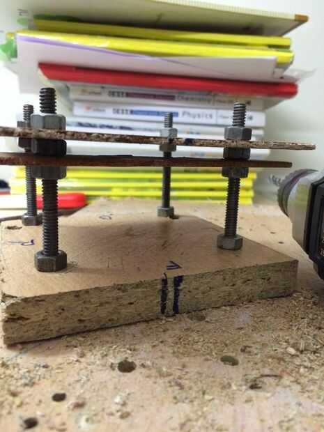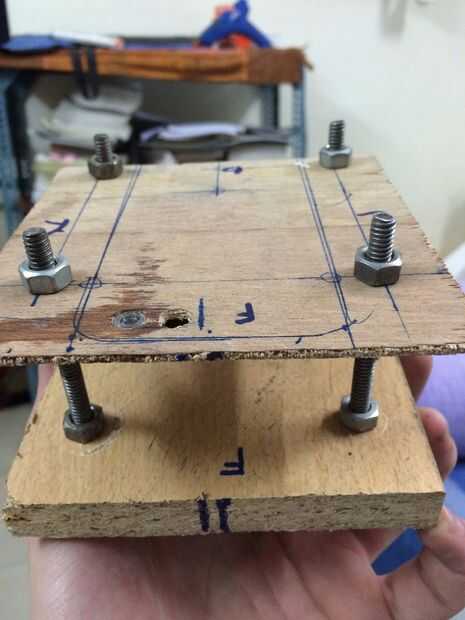 La forma es básico ver, hay dos piezas cuadradas de madera, el inferior es gruesa para aumentar la estabilidad, la superior se fija en una posición.