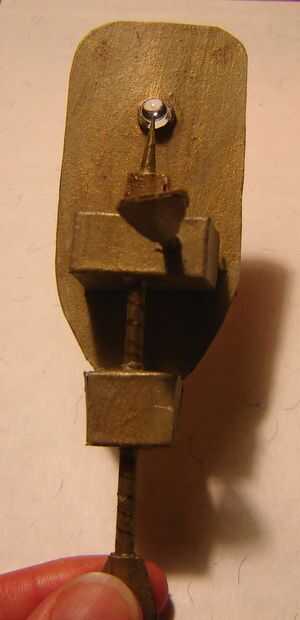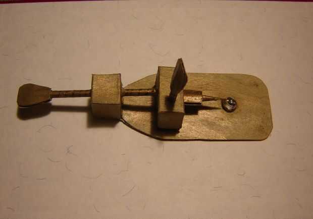 esto es una réplica del microscopio de Antonie van Leeuwenhoek de cartón, pinchos de bambú y una lente de una luz de la pluma.