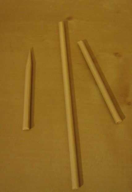 • Corte un pincho de bambú para que tenga tres piezas una de 7.5 cm de largo, uno de 3.5 cm de largo y un 3,2 cm con el extremo puntiagudo.