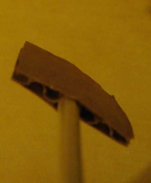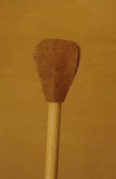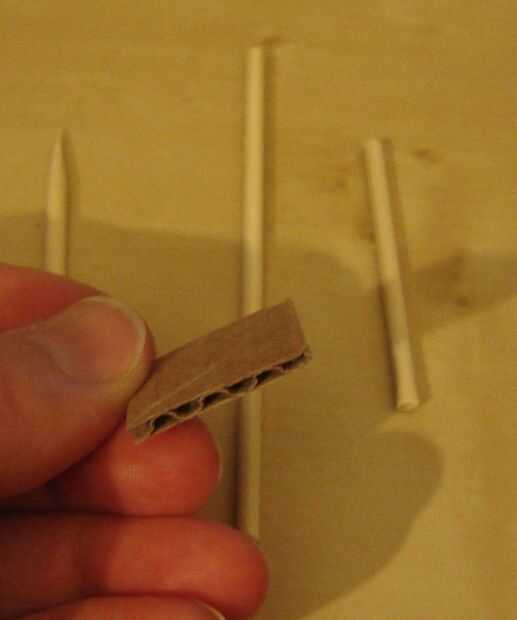 • Corte un cuadrado pequeño de cartón corrugado. Deslice el pincho en cartulina a lo largo de uno de los cantos en el centro.