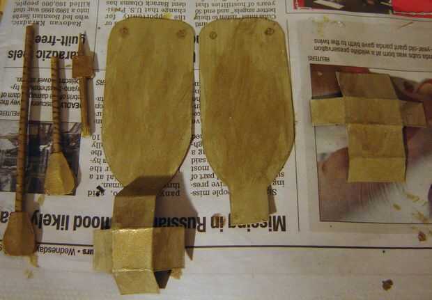 utilizo oro arte pintura con un poco de amarillo añadido para darle un aspecto cobrizo. Con pintura marrón he añadido remaches falsos y falso rosca en los tornillos.