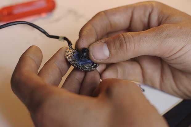 Invertir la lente (ponerlo encima de lado) y fijarla nuevamente en el centro de la cámara de Web en circuito (Sensor CMOS).
