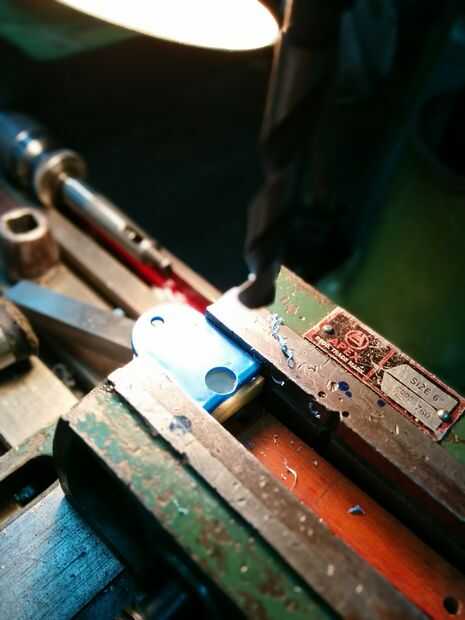 3) eligió el pedacito de taladro del tamaño de unos 1,5 mm menos que el diámetro de la pieza del ojo para acomodar el bamboleo mientras que perfora