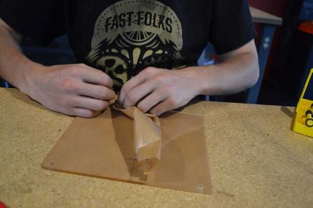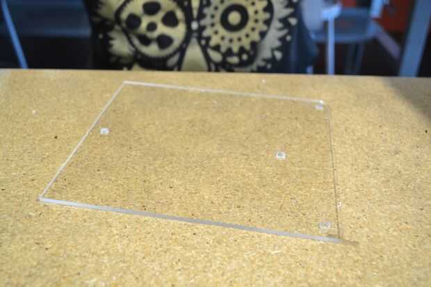Perforamos sobre la marca y retiramos el papel cubre el acrílico.
