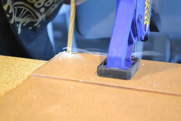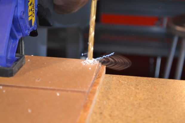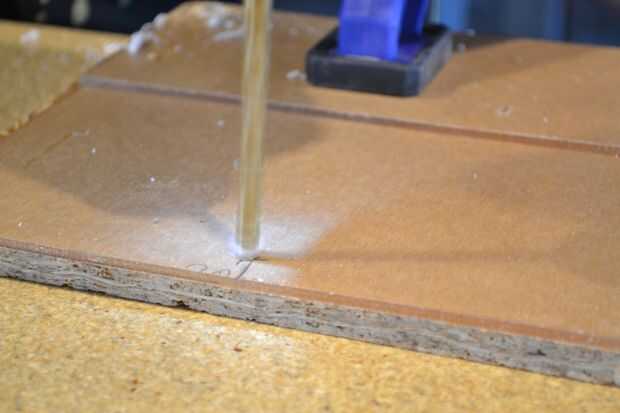 Con el taladro y la broca de 7/32 taladramos sobre las marcas.