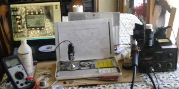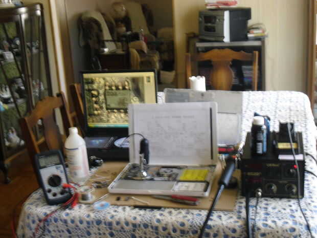 En el viejo IBM Thinkpad en el fondo que se ha dedicado a ello ahora debido a su edad y velocidad (falta de), puede ver el circuito estoy de soldadura e inspección. Este es el tipo más "lejos" de ver que estaba hablando.