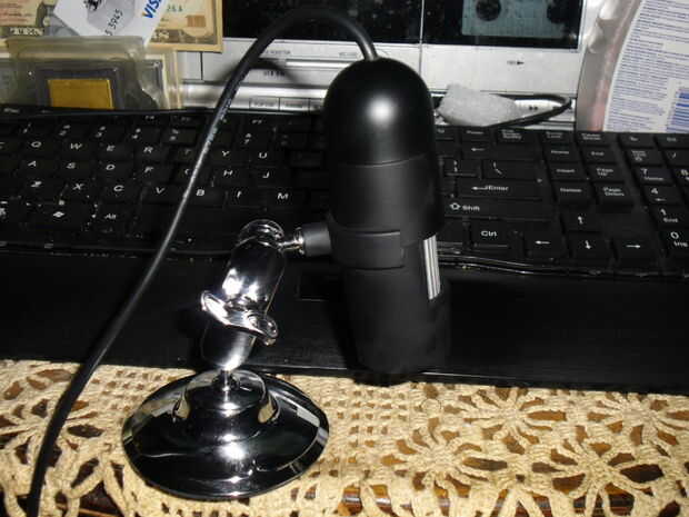 Inicialmente iba a cojear juntos una webcam antigua y lupa de joyero para esto, pero luego me enteré de que estos dispositivos se puede tener para $19 incluyendo el envío. Si lo pones en una postura mejor, se convierte en una pieza muy profesional de hardware!