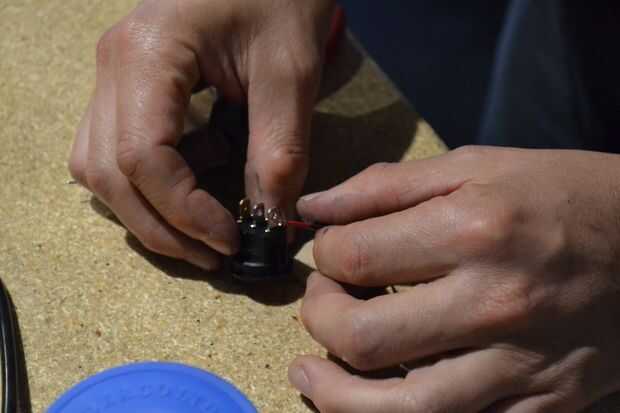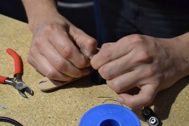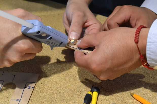 Pegamos con silicón unos leds superficiales un de un rectángulo pequeño MDF, estos leds van un cable de las Naciones Unidas de tener con un conector de pilas, para pueda obtener energía y situado.
