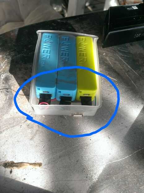 Conectar cada banco de potencia a cada uno de los enchufes USB macho e inserte las pilas en el cajón. Va a ser un ajuste apretado, pero lo hace, sin romper el cajón... Para fijar el cajón, utilicé un autorroscante tornillo en la parte delantera izquierda del cajón.