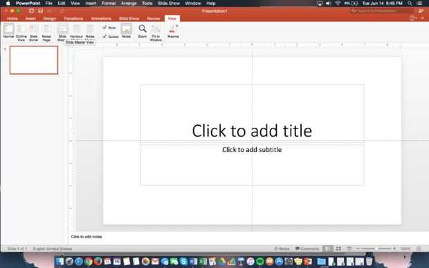 Abra un nuevo archivo de PowerPoint. Entra el maestro deslice a través de la ventana de vista.