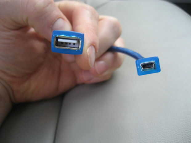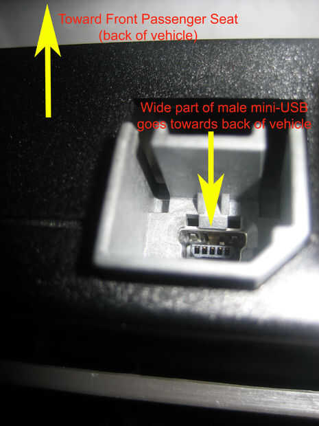 Que tienes que hacer esta ciego, por lo que se trata de una útil tip/imagen. Asegúrese de orientar la amplia porción de la mini-USB macho hacia la parte posterior del vehículo. Si consigues un cable similar a la descrita, le dará suficiente holgura para un disco plano, teléfono, etc.... para descansar en la guantera.