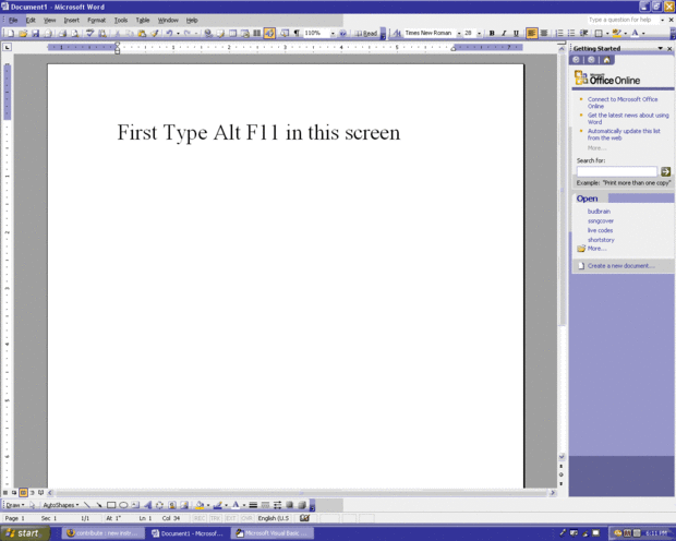 Golpear las teclas Alt y F11 al mismo tiempo en Microsoft word.