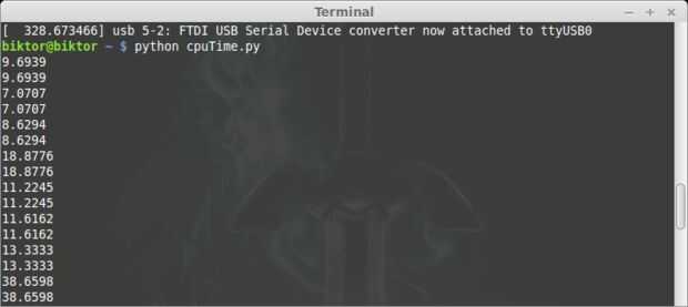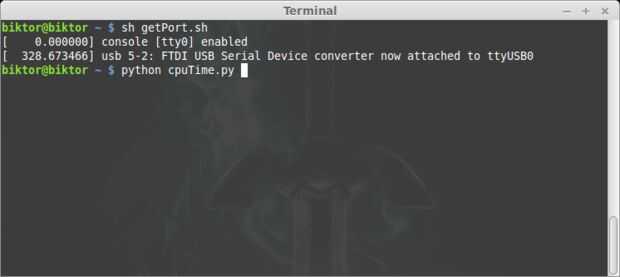 * para editar el archivo de python con el cpuTime.py abierto el puerto con un editor de texto como gedit 'gedit cpuTime.py'. Elimine ttyUSB0 después la variable puerto e inserte su puerto. intentar el paso 4 anterior.