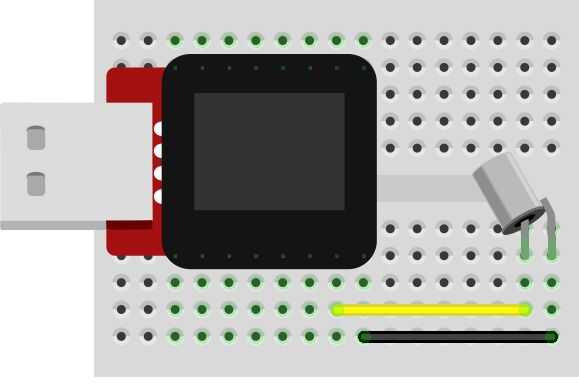 Es muy fácil de usar. Simplemente conectamos el más largo de los 2 pernos en el suelo y el otro al pin número A0 en el tablero de MicroView. Ver la imagen adjunta.