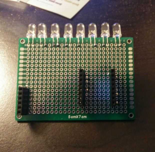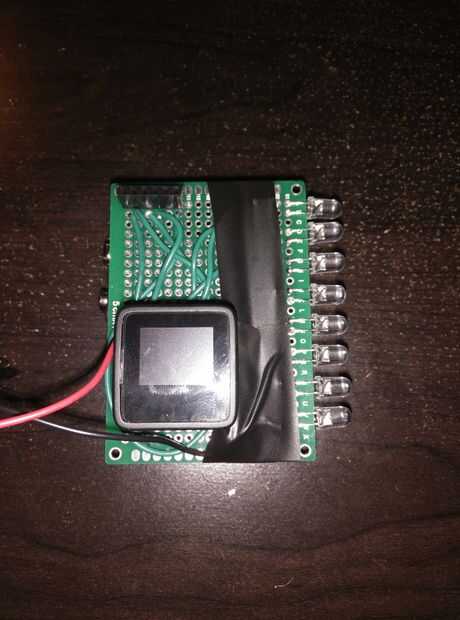 La construcción es bastante básica. Todos los LEDs a lo largo de la Junta de la soldadura. Cuando realice el cableado, el LED superior será LED1. Añadir una resistencia de 330 ohmios a la entrada de cada LED. Encabezados femeninos a la Junta para que coincidan con los pernos MicroView de la soldadura. También he añadido los encabezados para conectar el desglose FTDI que utilizo para programar el MicroView. Luego conecté LED 1-8 a los pines 2, 3, 5, 6, A0, A1, A2 y A3. Recuerda comenzar con el LED superior y el trabajo tu camino hacia abajo. El 0.1uf condensador es el disparador de reset de la ruptura FTDI. Si no sabes cómo acoplar el FTDI que indicamos en el micrófono. Conectar los cables del conector de la batería a VCC y tierra.