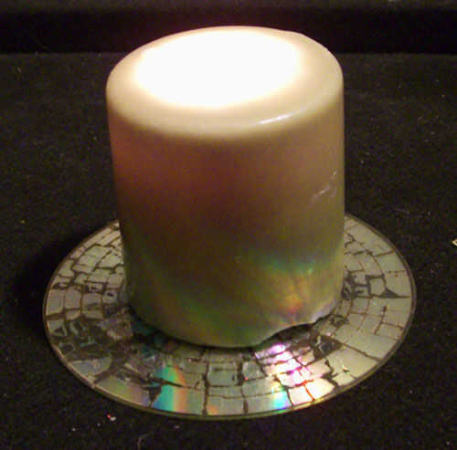 Además, la cera caliente probablemente podría derretir un CD. Nunca deje una vela ardiente.