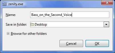 Cuando este archivo existe, le pedirá un archivo MIDI para convertir (no estoy seguro si se admiten espacios en nombres de carpeta/archivo). Al elegir uno, pedirá donde guardar el archivo y lo guarde como. El "WAV" es agregado automáticamente.