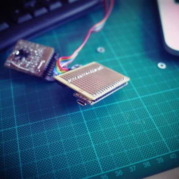 Hice un pequeño doble faz placa perforada PCB y había soldado el micro en ese tablero.
