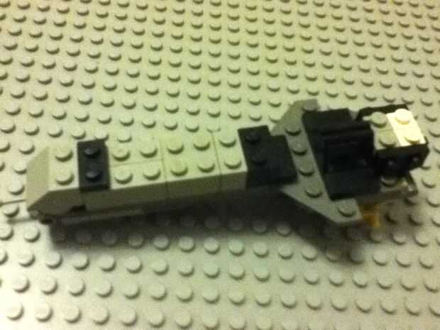 hice un LEGO Halo UNSC Falcon/Pelican artillado. Tiene el tamaño y ala forma de un pelícano mezclado con el cuerpo y fuego energía de un halcón mezclada en una nave. La nave de la pistola puede acomodar hasta 10 mini figuras de max con dos principale