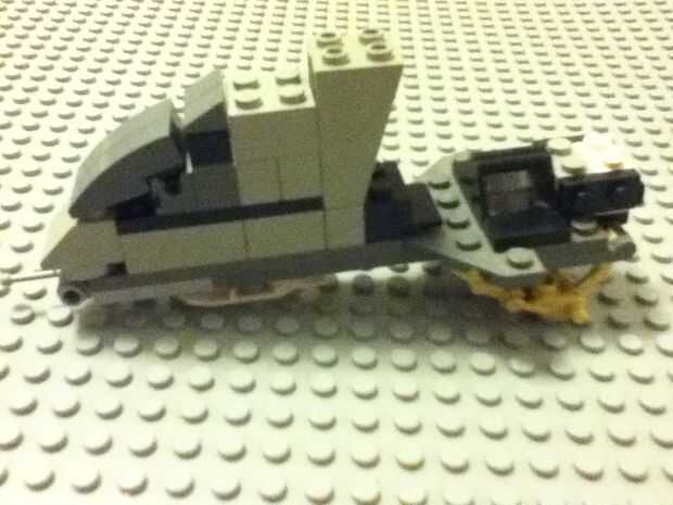hice un LEGO Halo UNSC Falcon/Pelican artillado. Tiene el tamaño y ala forma de un pelícano mezclado con el cuerpo y fuego energía de un halcón mezclada en una nave. La nave de la pistola puede acomodar hasta 10 mini figuras de max con dos principale