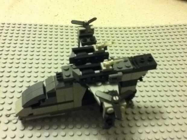 hice un LEGO Halo UNSC Falcon/Pelican artillado. Tiene el tamaño y ala forma de un pelícano mezclado con el cuerpo y fuego energía de un halcón mezclada en una nave. La nave de la pistola puede acomodar hasta 10 mini figuras de max con dos principale