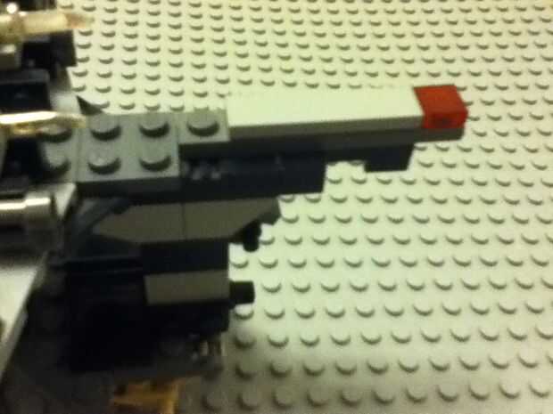 hice un LEGO Halo UNSC Falcon/Pelican artillado. Tiene el tamaño y ala forma de un pelícano mezclado con el cuerpo y fuego energía de un halcón mezclada en una nave. La nave de la pistola puede acomodar hasta 10 mini figuras de max con dos principale